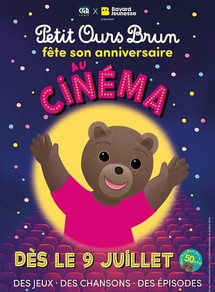 Cet été Petit Ours Brun fait son cinéma ! Bayard Jeunesse s’associe à CGR Events pour célébrer les 50 ans du personnage en proposant des séances adaptées aux petits. Elles mêleront des épisodes du dessin animé Petit Ours Brun et des séquences surprises (2 clips musicaux et 2 séquences de jeux inédites, un “cherche et trouve” et un “chercher l’intrus”).